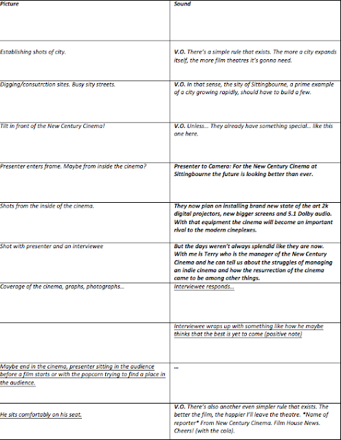 Unlike film scripts, documentary and news scripts are almost similar as they put what are sounds and what actions are going to be presented on different sides of the paper. As explained again from Andrew Utterback's book.